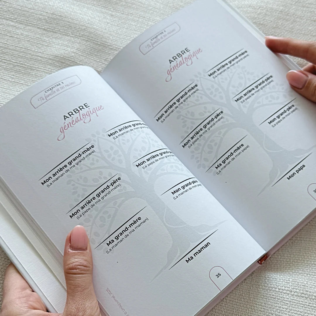 Ce journal est pensé pour tous les membres de la famille : parents, grands-parents, oncles, tantes… Toute personne dont vous souhaitez garder l’histoire précieuse. Même votre partenaire.